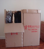 本公司特設掛衣箱,客人不需另備紅白藍或紙箱存放掛衣,只需直接轉放,方便整潔。